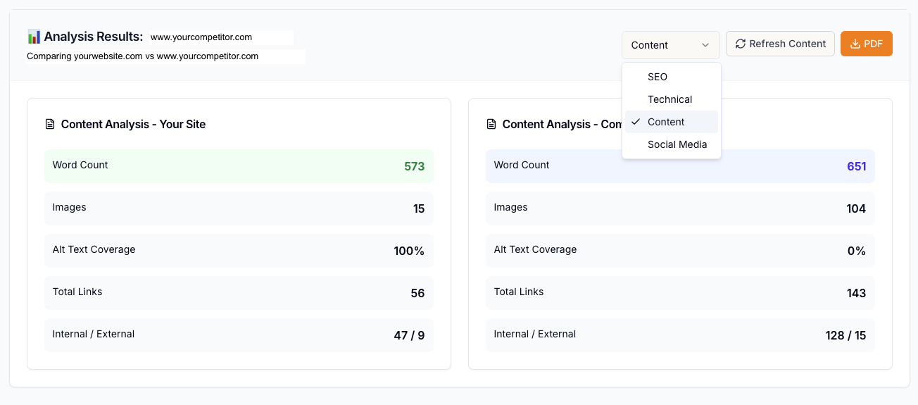 Compare the structure and depth of your content.
