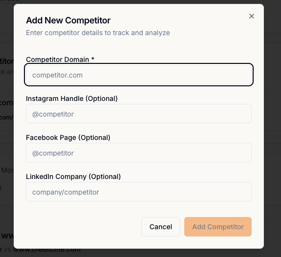 - Click “Add Competitor”
