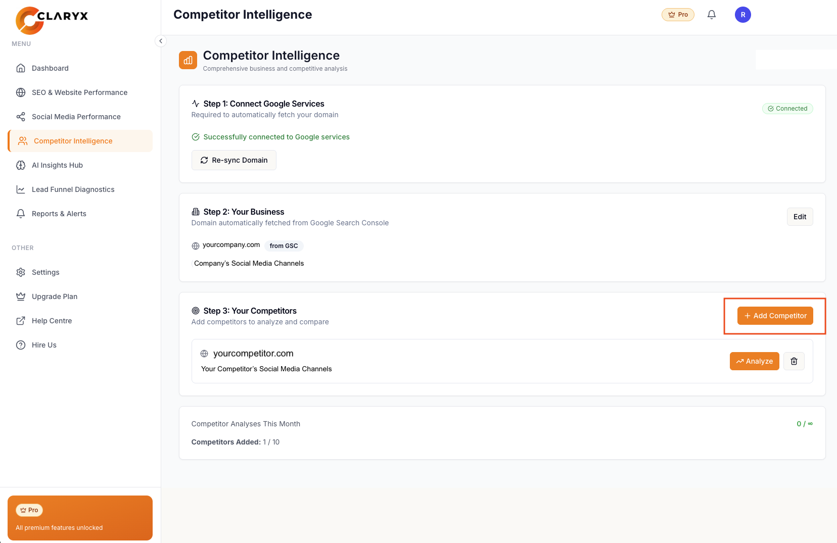 This allows Claryx to compare your data vs competitors accurately.