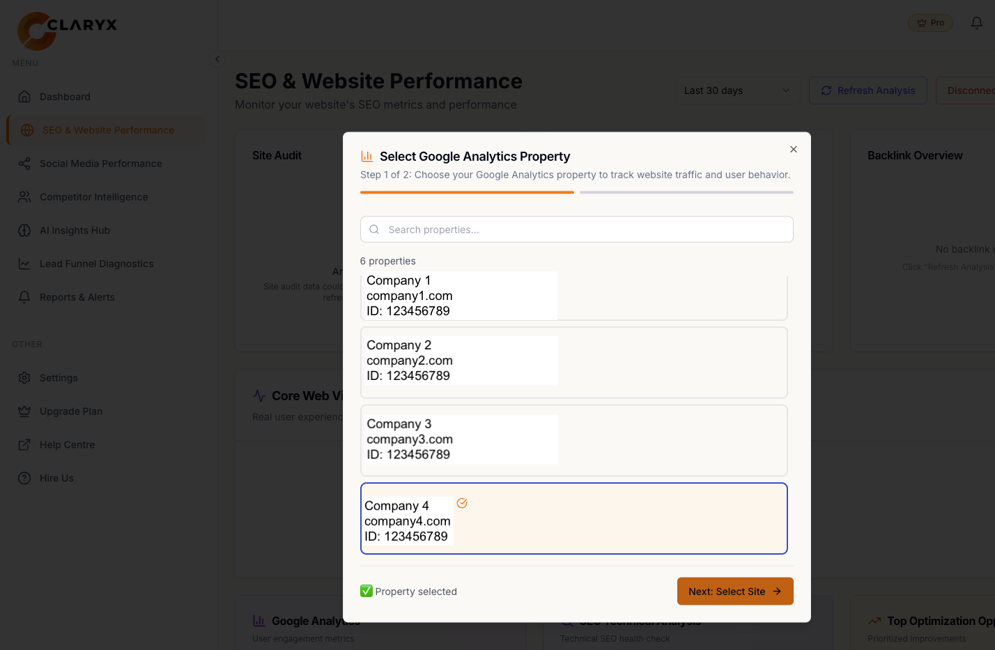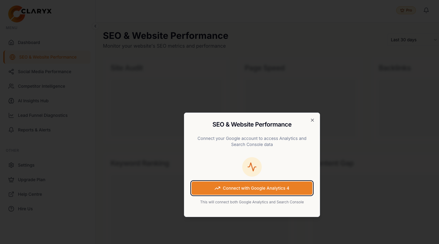 Connect your Google Analytics data directly into Claryx.