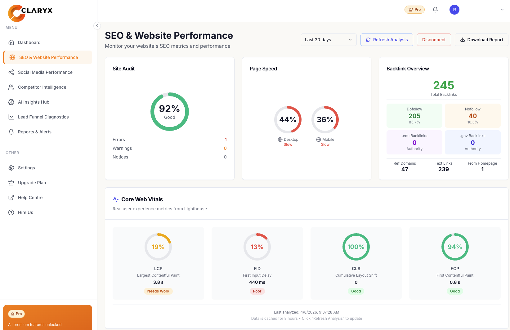 This section gives you a clear view of how your website is performing from an SEO and technical perspective.